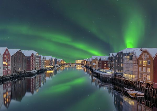 Lagerhäuser Trondheim Norwegen Nordlicht