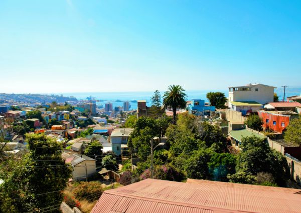 Panoramablick von La Sebastiana von Valparaiso in Chile