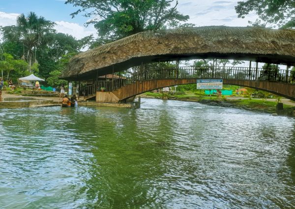 Holzbrücke an der Quelle des Tioyacu-Flusses in Rioja Tarapoto, Peru