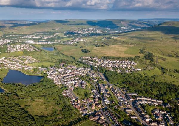 Luftaufnahme der Stadt Brynmawr in den Tälern von Südwales, © whitcomberd / stock.adobe.com