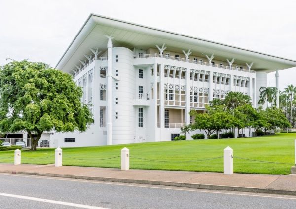Das schöne Parlamentsgebäude im historischen Zentrum von Darwin, Australien, an einem sonnigen Tag, © Marco Taliani / stock.adobe.com