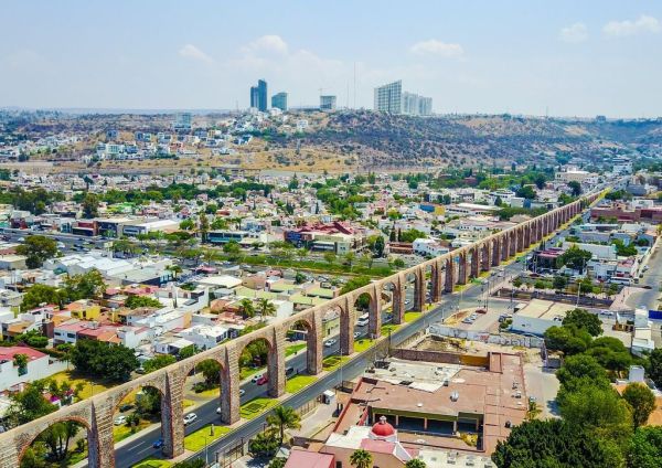 Aquädukt von Queretaro, dieses Aquädukt ist das Symbol der Stadt Queretaro und eines der größten Aquädukte in Mexiko, © IVAN / stock.adobe.com