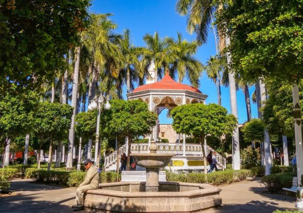 Pavillon und Brunnen im Park von El Fuerte, in der Stadt El Fuerte im Bundesstaat Sinaloa, Mexiko, © Kylie / stock.adobe.com