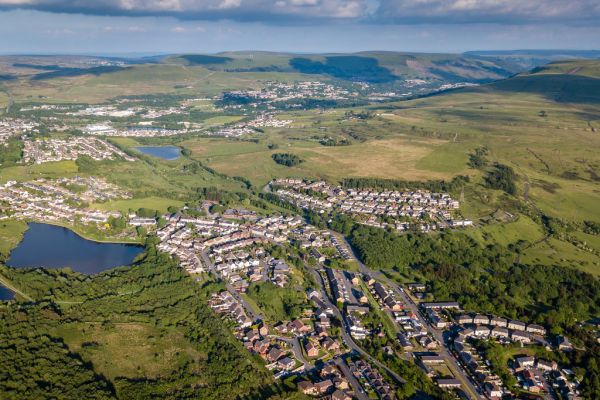 Luftaufnahme der Stadt Brynmawr in den Tälern von Südwales