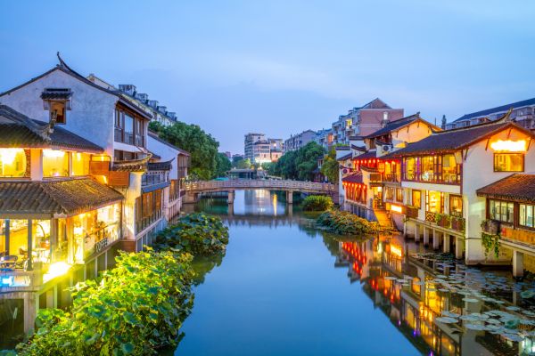 Nachtszene in der Altstadt von Qibao in Shanghai, China China
