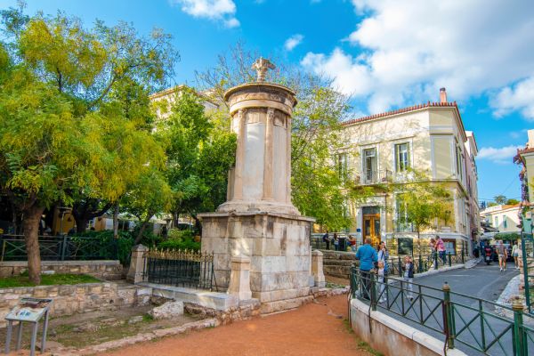 Blick auf das Choragische Monument des Lysikrates in Athen Griechenland