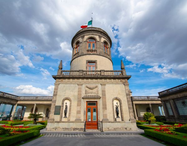 Das Schloss Chapultepec wurde 1864 im neoklassischen Stil auf dem Chapultepec-Hügel in Mexiko-Stadt CDMX, Mexiko, erbaut. Mexiko