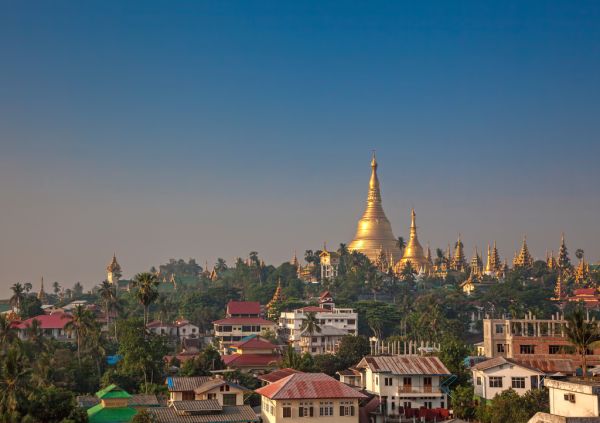 Yangon, Myanmar Blick auf die Shwedagon-Pagode am Morgen Myanmar