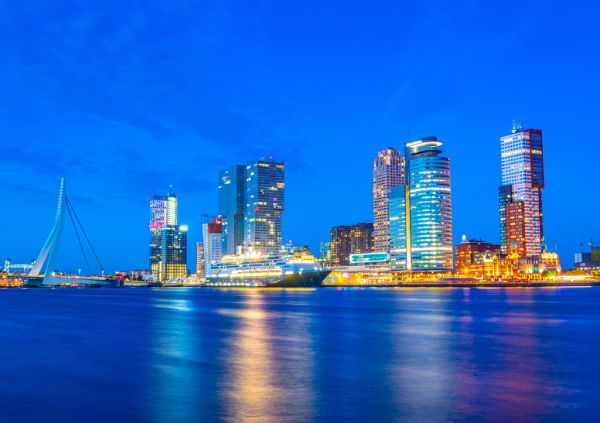 Lais Puzzle - Nachtansicht des Holland america line Gebäudes und anderer Wolkenkratzer in Rotterdam, Niederlande - 1.000 Teile