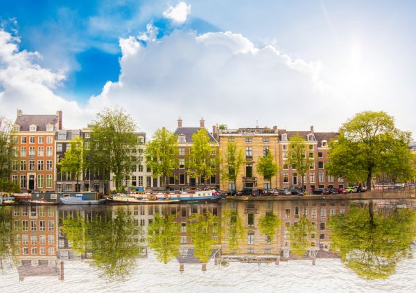 Schöne Amsterdamer Grachten mit typischen Häusern Niederlande