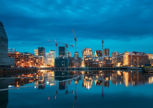 Lais Puzzle - Oslo, Norwegen. Nachtansicht Böschung und mehrstöckiges Wohnhaus im Stadtteil Gamle Oslo - 1.000 Teile