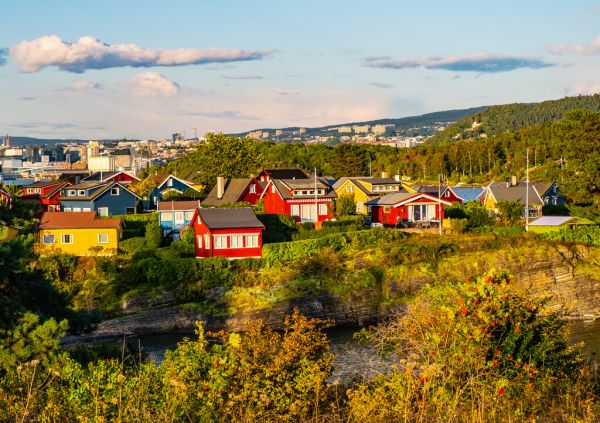 Lais Puzzle - Panoramablick auf die Insel Nakholmen im Hafen von Oslofjord mit Sommerhäusern am Ufer im Frühherbst bei Oslo, Norwegen - 1.000 Teile