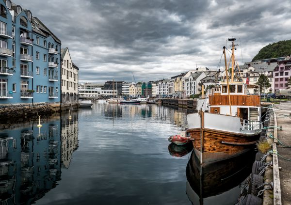 Boot am Pier in Aalesund in Norwegen Norwegen