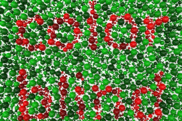 Farbenblindheitstest mit Kugeln. 3d Illustration Psychedelisch