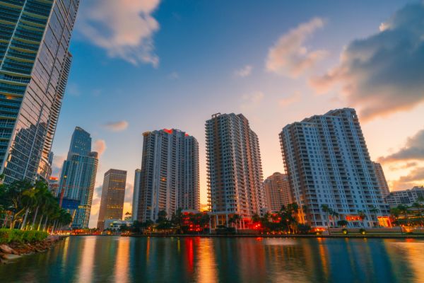 Miami Florida Brickell Key Skyline bei Sonnenaufgang USA