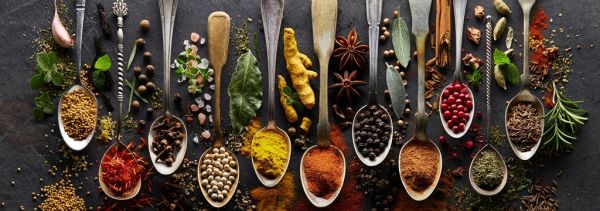 Lais Puzzle - Kräuter und Gewürze auf Graphithintergrund, Panorama - 1.000 Teile