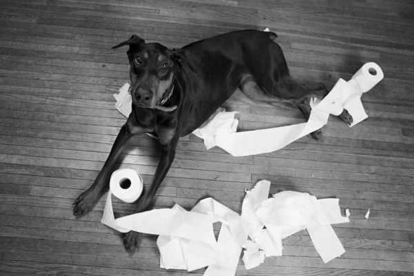 Dobermann in schwarz weiß