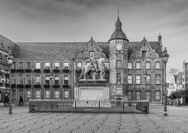 Lais Puzzle - Jan-Wellem-Statue, Rathaus, Marktplatz, Altstadt von Düsseldorf, Deutschland in schwarz weiß - 500, 1.000 & 2.000 Teile
