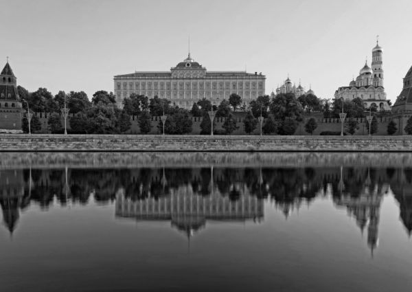 Lais Puzzle - Frontansicht des Moskauer Kremls und Spiegelung im Fluss in schwarz weiß - 500, 1.000 & 2.000 Teile