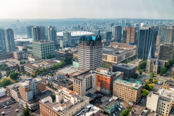 Skyline von Vancouver Downtown vom Dach der Stadt aus, British Columbia, Kanada Kanada