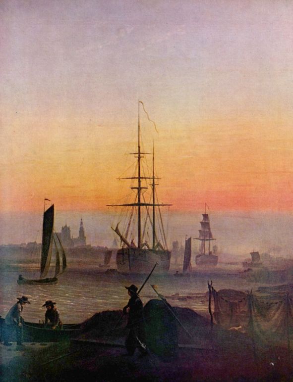 Caspar David Friedrich - Schiffe im Hafen von Greifswald - vor 1810 - Öl auf Leinwand - Berlin - Alte Nationalgalerie - Deutschland - Romantik