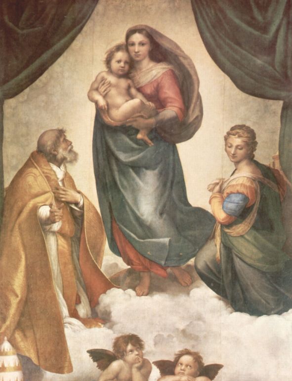 Raffael - Sixtinische Madonna, Szene: Maria mit Christuskind, Hl. Papst Sixtus II. und Hl. Barbara - 1513-1514 - Öl auf Leinwand - Dresden - Gemäldegalerie - Italien - Renaissance